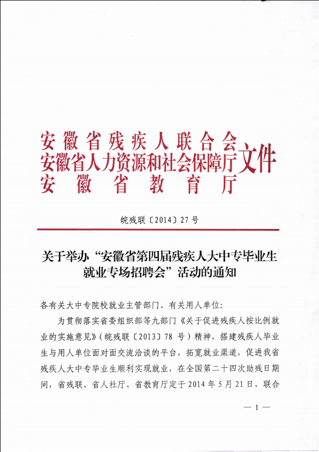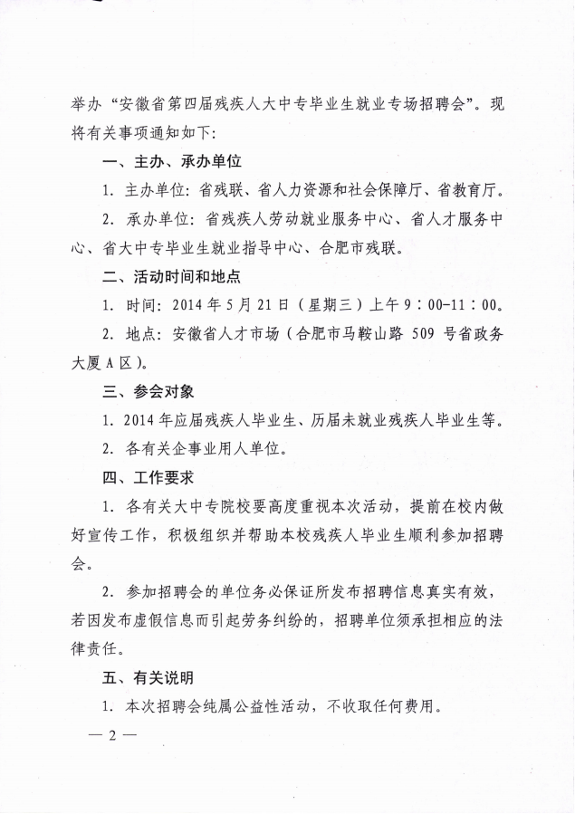 安徽省第四届残疾人大中专毕业生就业专场招聘会