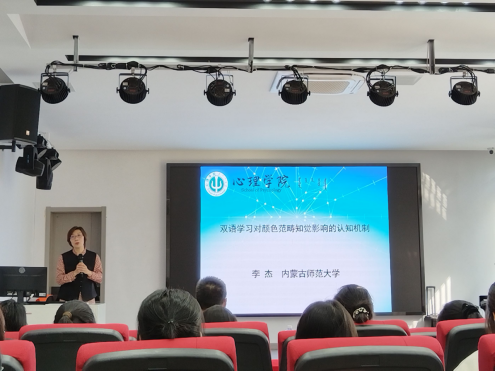 2024年10月25日,内蒙古师范大学李杰教授应邀为艺术与教育学院师生作了题为“双语学习对颜色范畴知觉影响的认知机制”的学术报告。李杰教授在讲座中详细介绍了双语学习对颜色范畴知觉影响的研究背景,以及研究团队针对这个问题开展的一系列认知行为、脑电以及眼动等的实验研究,为语言相对论的弱假设提供了有力证据。