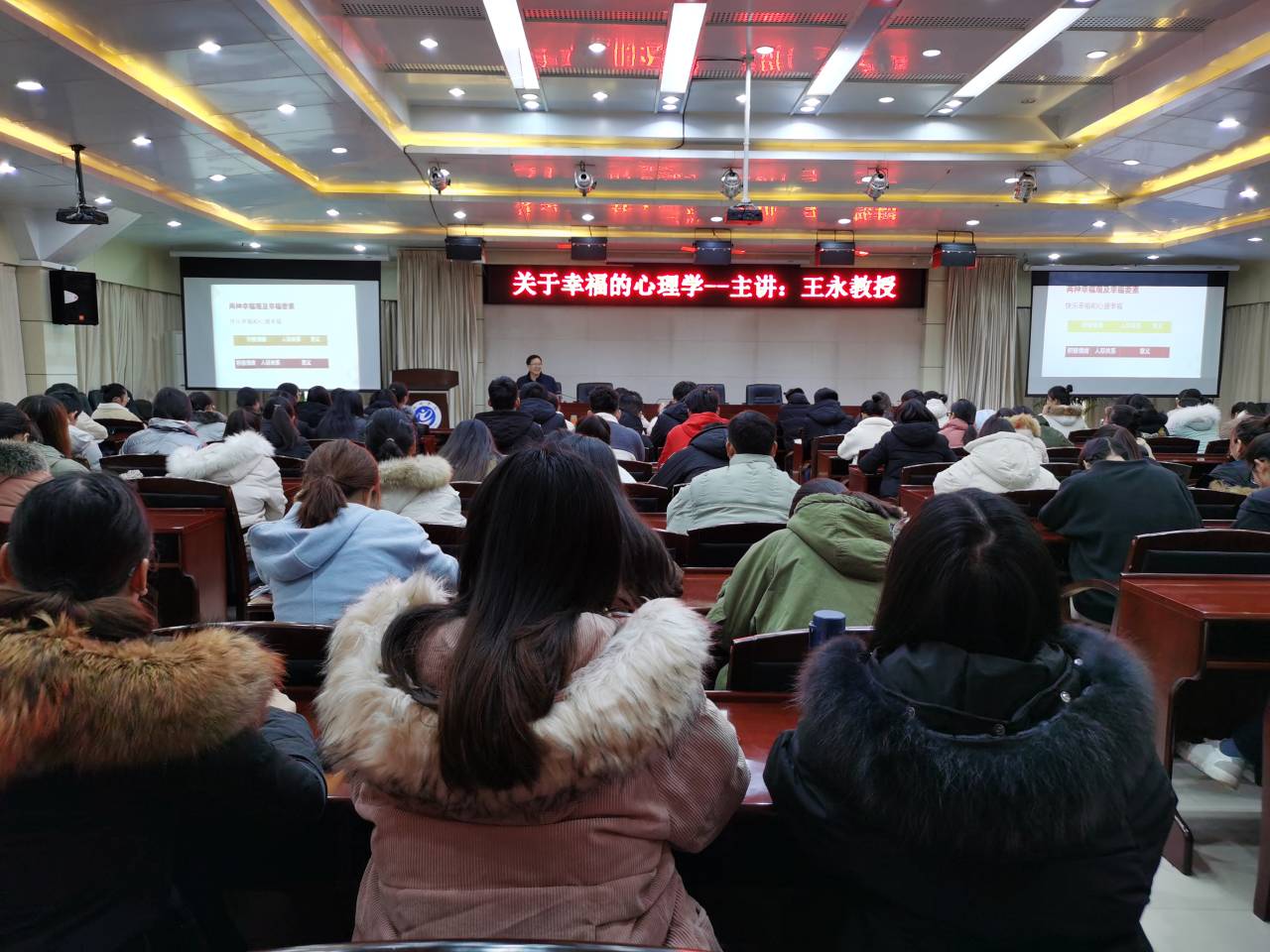 12月21日上午,学生处在办公南二楼会议室举办关于幸福的心理学培训会。培训会由安徽省督学、省教育评估专家、省教育厅大学生心理健康教育专家指导委员会委员王永教授主讲。PP电子大学生心理委员联合会和二级学院心理部心理学干们参加了培训。