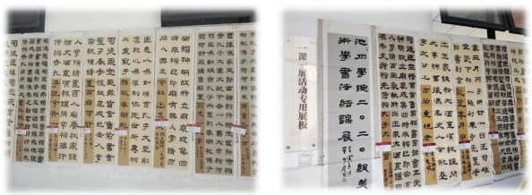 为深入推进素质教育,增强学生的审美能力,提升人生境界和审美情趣,在书法老师的指导下,学生们第一次临摹了《乙瑛碑》,并在艺术楼一楼书法教室展览区举办了“书法结课展览”活动。