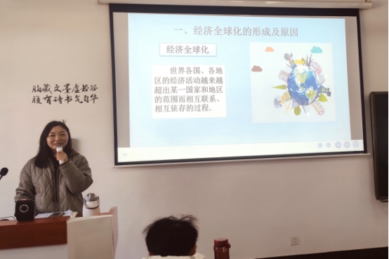 公开课上,杨慧宇老师为大家讲授了“第五章 资本主义的发展及其趋势”。杨老师聚焦经济全球化与推动构建人类命运共同体,以“列举你身边的经济全球化表现”为切入点,由浅入深、循序渐进的开展教学。整个课堂教学过程中,她适时地结合时事热点及教学问题展开讨论,课堂气氛活跃,课程内容重点突出,课程结构紧密细致,教学效果较好。