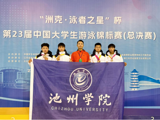 体育学院谷星晨、郭浩杰、李于、郑懿玮等4名同学参加了丙B组的比拼。经过激烈的角逐,体院学子合力摘得男子4×200米自由泳接力的铜牌(指导教师:周天宇、刘静静、林宏牛);郑懿伟同学获男子400米自由泳铜牌(指导教师:周天宇);在100米仰泳、200米自由泳和4×100米自由泳接力等项目上均进入前八名(指导教师:周天宇、刘静静、林宏牛)。同时,体院学子凭借顽强拼搏的精神,获得丙B组男子团体总分第八名的优异成绩。