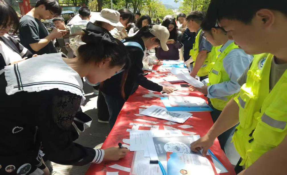 在第十个全民国家安全日来临之际,为切实增强广大学生的国家安全意识,营造维护国家安全的浓厚氛围,4月15日中午安全管理处联合PP电子游戏网站为民警务站在校园一、二食堂西门组织开展了以“筑牢国家安全防线,法治护航青春成长” 为主题的普法教育宣传活动。