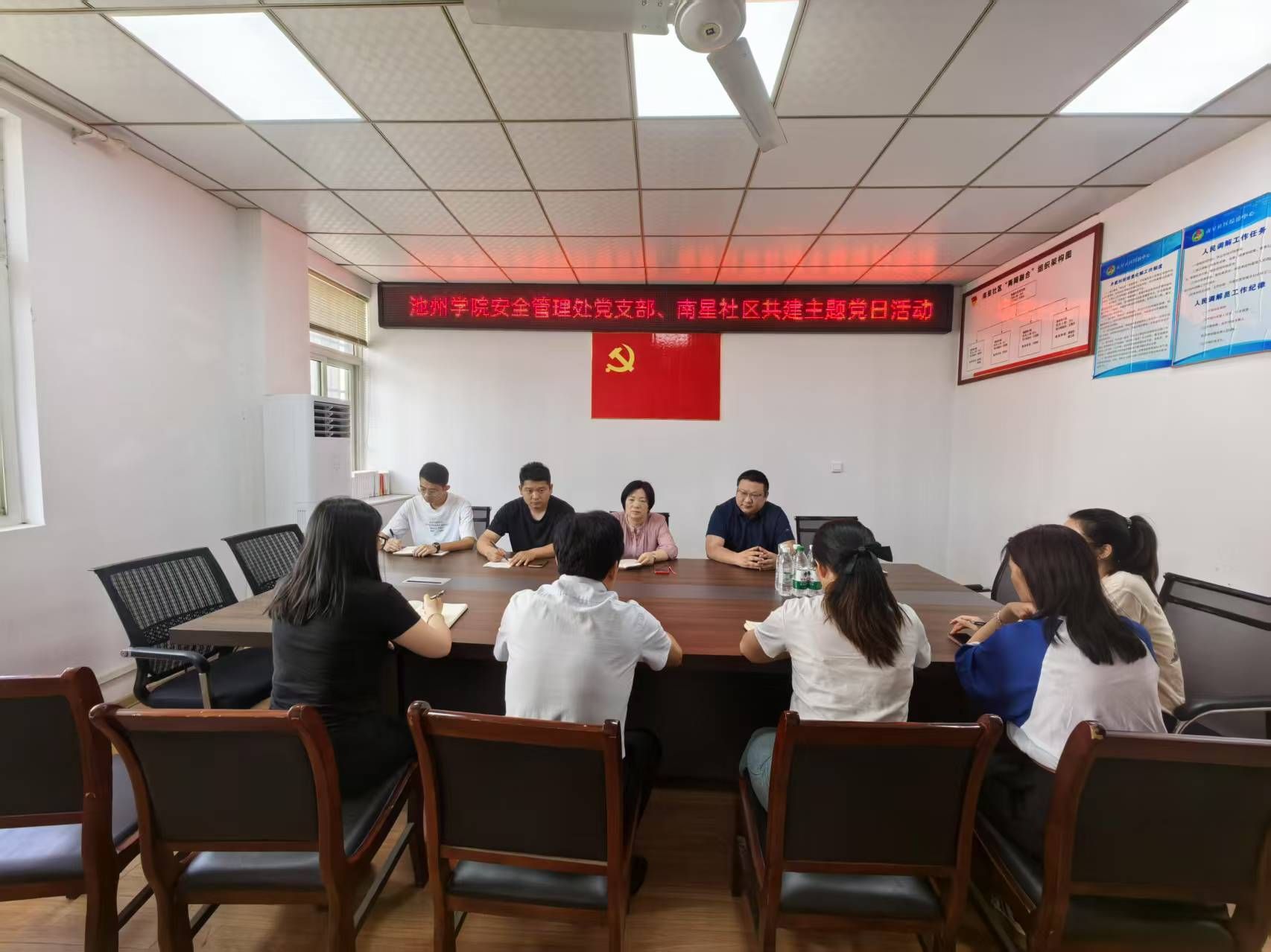 为进一步强化校园周边安全管理、营造和谐稳定的育人环境。6月6日上午,安全管理处党支部先后深入碧山、南星社区,开展了以“党建引领聚合力、校社共建护平安”为主题的安全共建主题党日活动,并在充分沟通交流基础上达成结对共识,签订共建协议书。