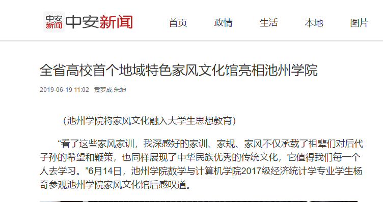 【中安在线】全省高校首个地域特色家风文化馆亮相PP电子游戏网站