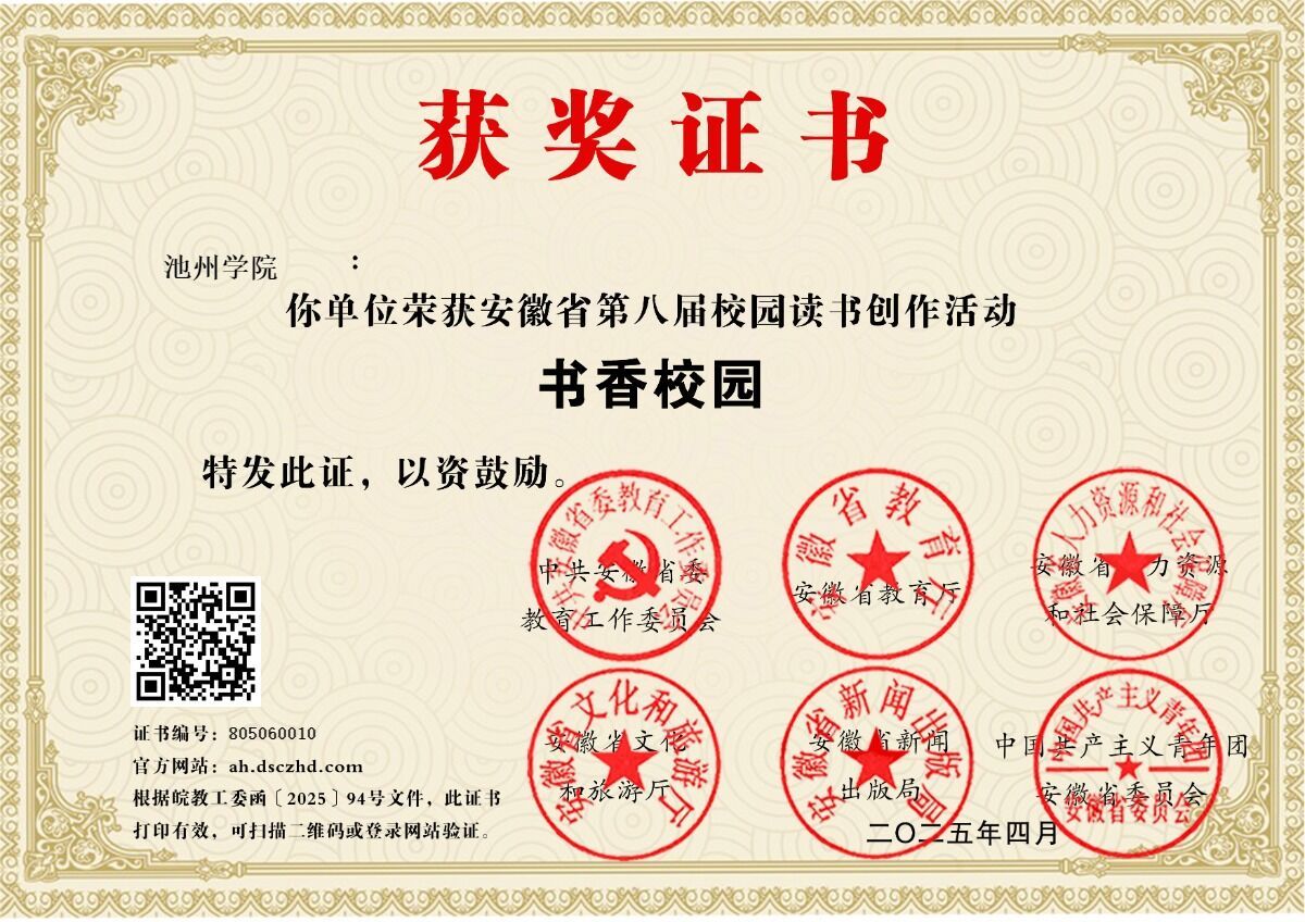 近日,由省委教育工委、省教育厅、省人力资源和社会保障厅、省文化和旅游厅、省新闻出版局、团省委共同主办的安徽省第八届校园读书创作活动结果揭晓,PP电子荣获安徽省第八届校园读书创作活动“书香校园”荣誉称号。同时,在本次读书创作活动中,PP电子共有12名学子在主题征文及创意写作评比大学生组别中斩获一等奖(3名)、三等奖(5名)和优秀奖(4名)。