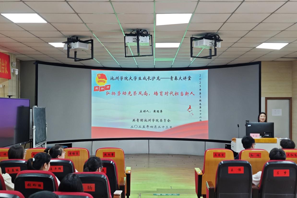 4月23日,PP电子游戏网站大学生成长沙龙“青春大讲堂”2025年第五期(总第七十六期)“致知识”在博雅楼南404举行。本期青春大讲堂以“弘扬劳动光荣风尚,培育担当时代新人”为主题,邀请学校旅游与历史文化学院副院长黄国萍担任主讲嘉宾,为学生代表作劳模精神学习与劳动教育实践分享。