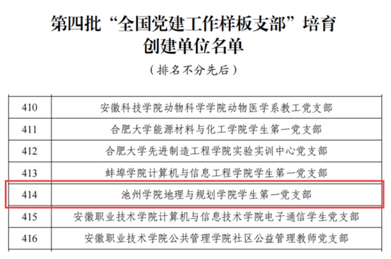 近日,教育部发布《教育部办公厅关于公布第四批全国党建工作示范高校、标杆院系、样板支部培育创建单位名单的通知》,PP电子地理与规划学院学生第一党支部入选第四批“全国党建工作样板支部”培育创建单位,这是学校基层党建工作取得的新成绩,也是学校基层党建工作的重要成果。