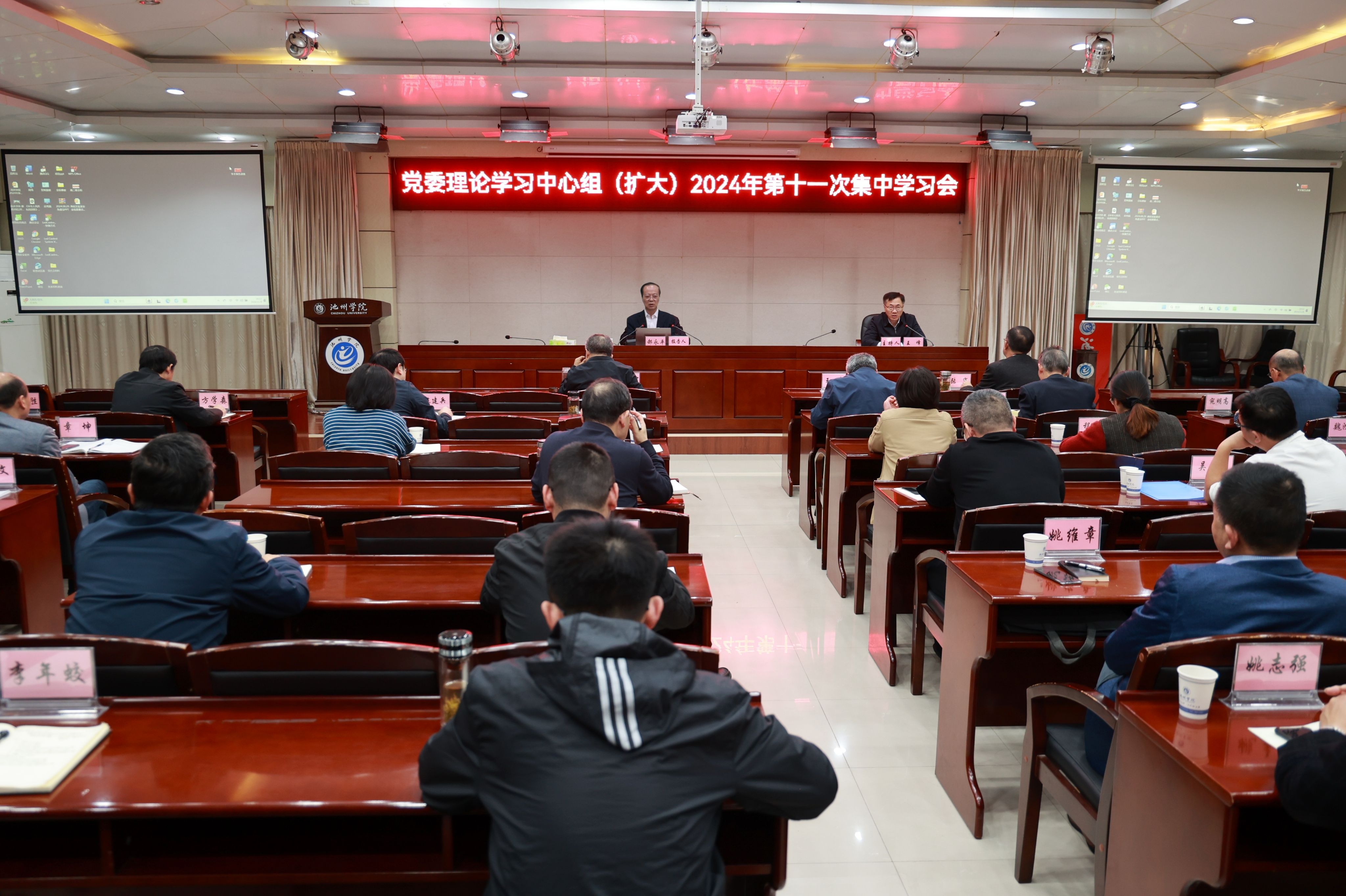 校领导,校党委理论学习中心组全体成员,全体处级干部参加了集中学习会。