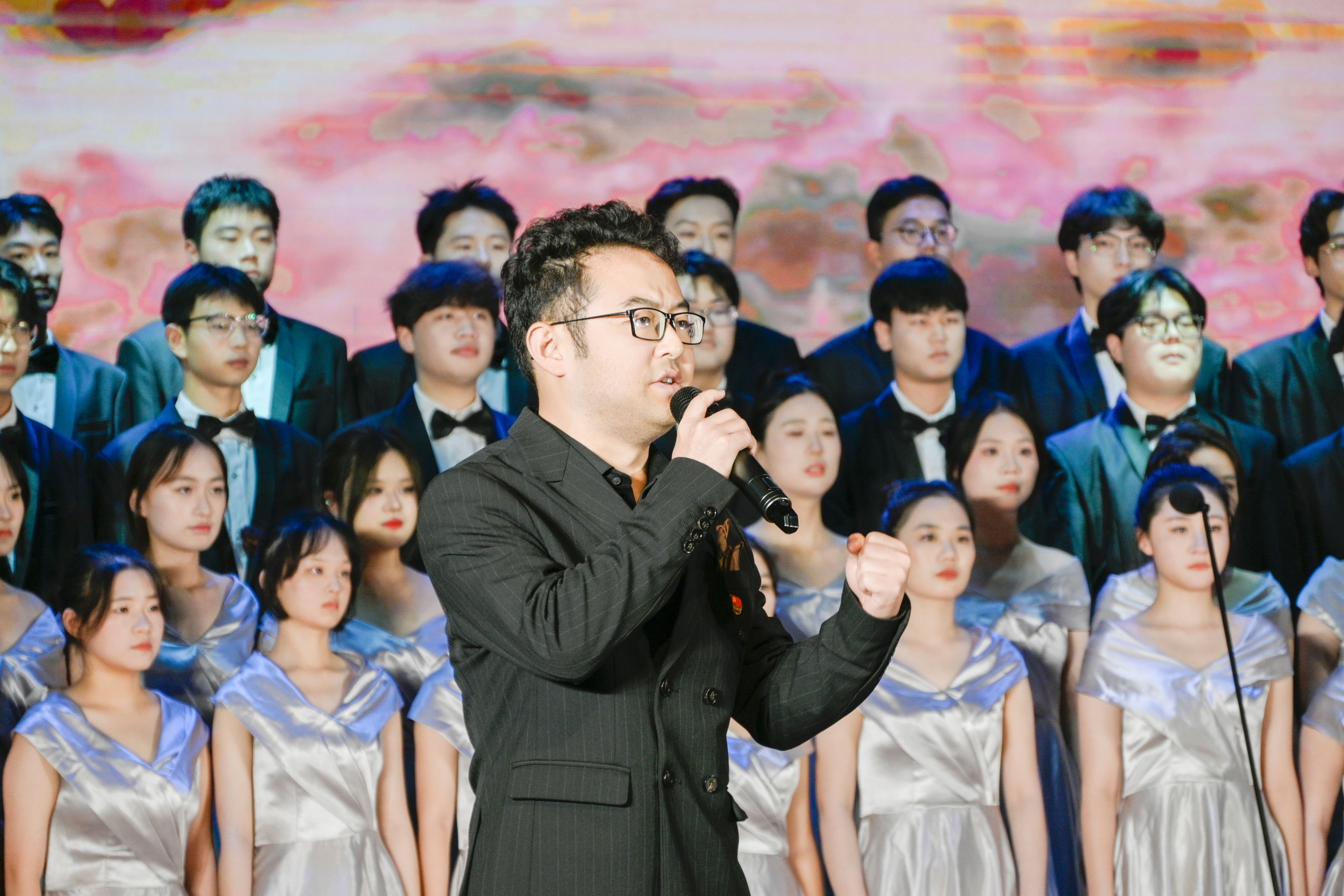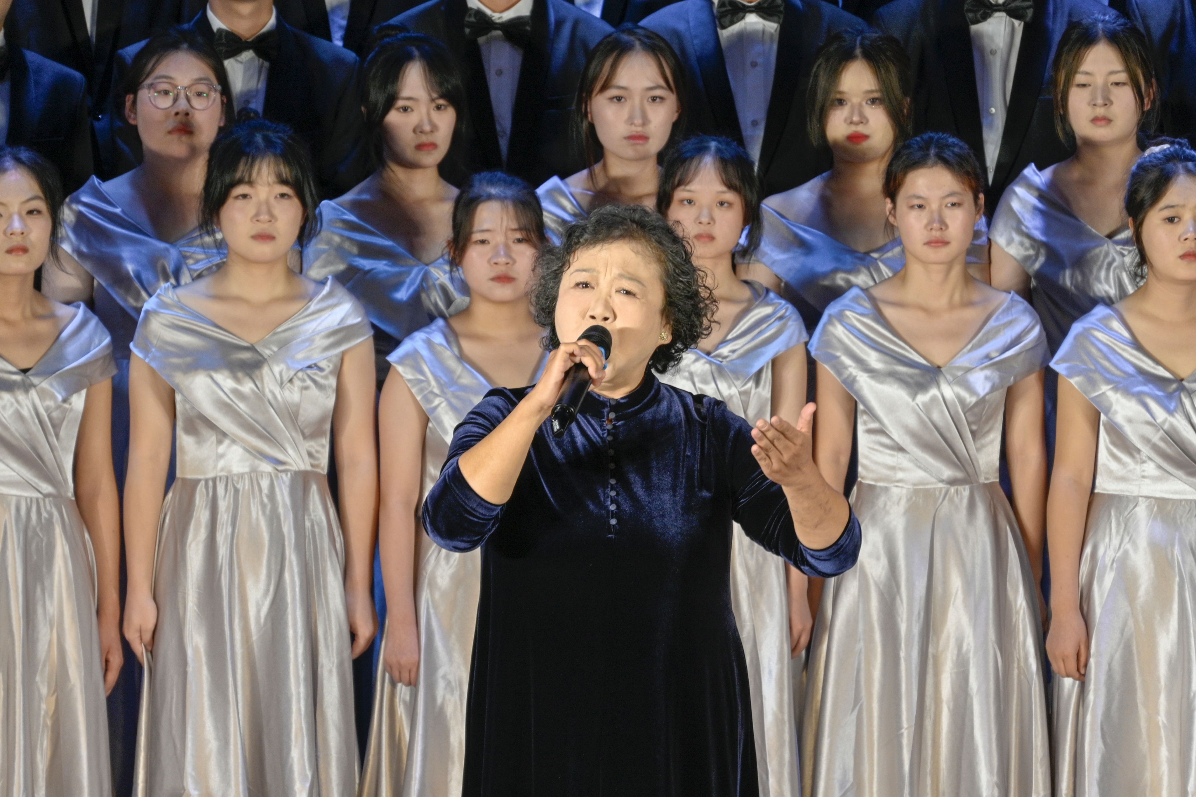 师生同台合唱,激情澎湃,歌颂了中华民族悠久的历史,共同回溯了党的光辉足迹,感受了那份在革命烽火中淬炼出的坚定与执着,让心灵在红色旋律中得到洗礼和升华。