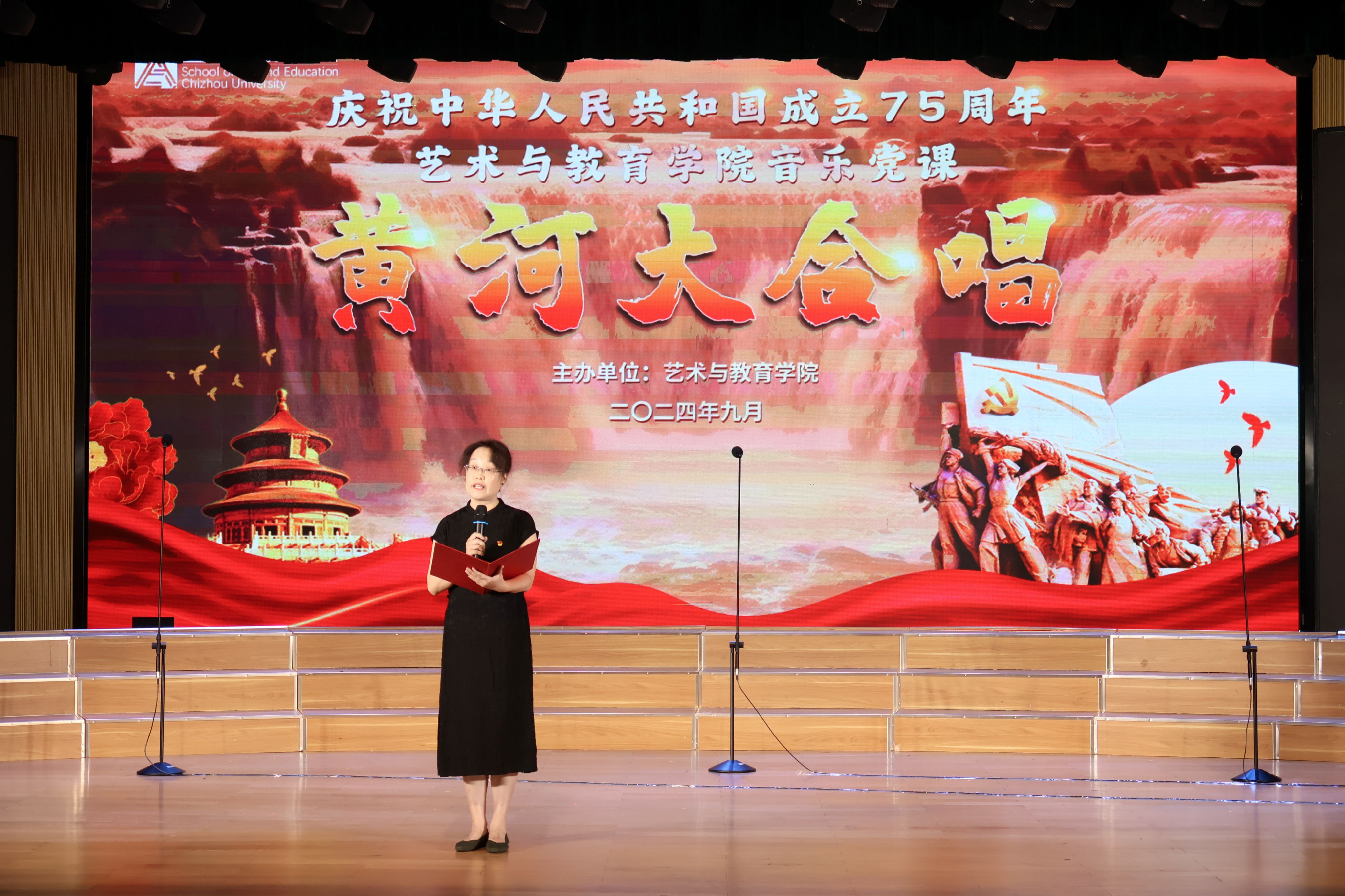 为深入学习贯彻党的二十届三中全会精神,喜迎中华人民共和国成立75周年,9月29日,学校在音乐厅举办“庆祝中华人民共和国成立75周年,不朽的音乐史诗—《黄河大合唱》”音乐党课。校党委副书记、校长王先柱,校党委委员、副校长阳光宁、吕刚、张赛出席活动。
