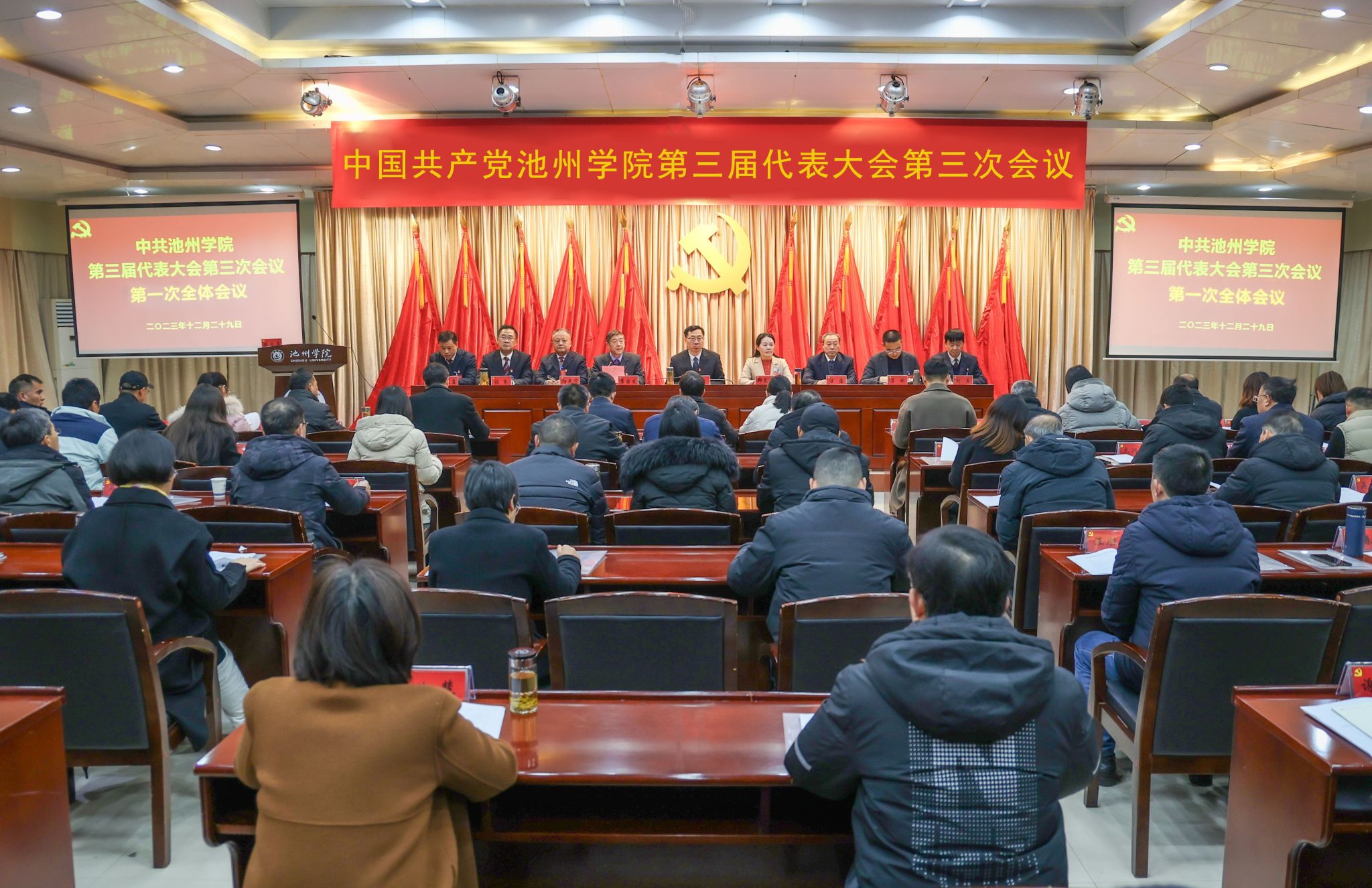 12月29日,中共PP电子游戏网站第三届代表大会第三次会议在办公南二楼会议室胜利召开。大会由校党委书记王峰主持。校党委班子成员郑兰荣、崔国发、汪海、阳光宁、吕刚、张赛、胡兵、汤文益在主席台就坐。85名正式代表出席会议。