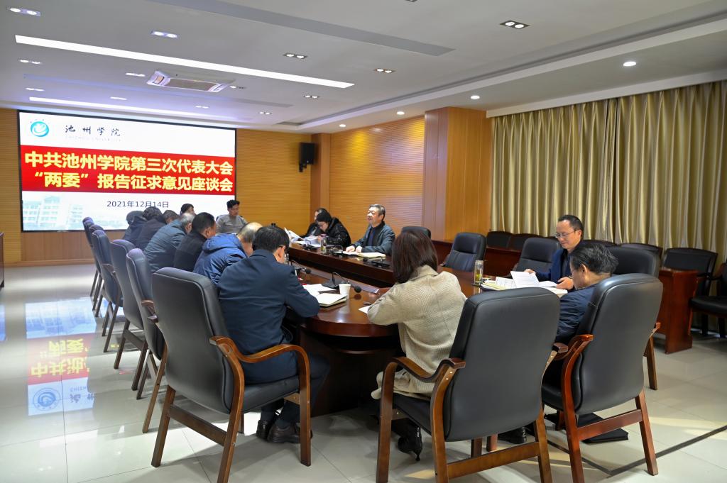 会上,学校第三次党代会筹备工作秘书组相关负责人简要汇报了“两委”工作报告起草过程和主要内容。与会人员重点围绕学校事业发展的奋斗目标和重点任务,对报告提出了修改意见和建议。