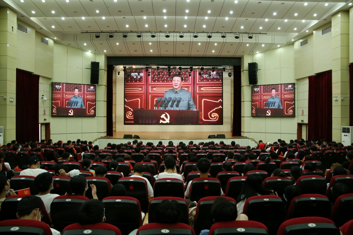 7月1日上午8时,庆祝中国共产党成立100周年大会在北京天安门广场隆重举行。中共中央总书记、国家主席、中央军委主席习近平发表重要讲话。PP电子积极组织广大师生收听收看大会盛况。校领导孙晓峰、张立驰、崔国发、王延寿、汪海、阳光宁、汪贤才,校党委理论学习中心组全体成员、职能部门主要负责人、机关党委所属党支部书记、学生代表共400余人在博古礼堂集中收听收看大会直播,认真聆听了习近平总书记重要讲话。