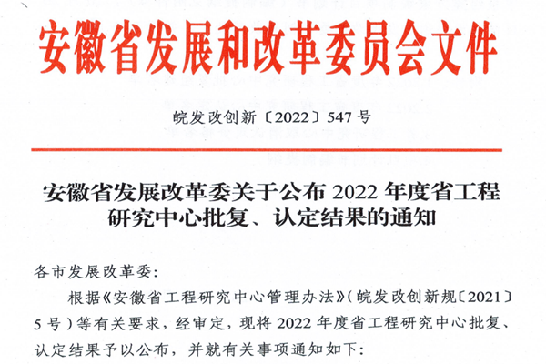 近日,安徽省发展和改革委员会下发了《安徽省发展改革委关于公布2022年省工程研究中心批复、认定结果的通知》,PP电子牵头申报的“安徽省高活性微纳粉体工程研究中心”喜获立项建设。