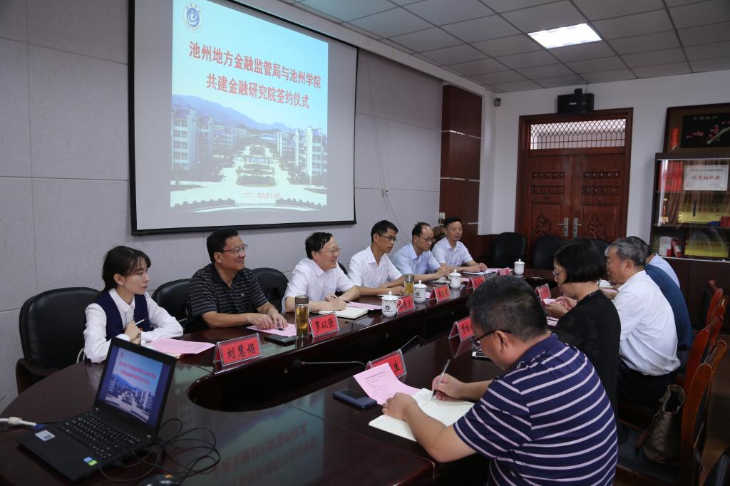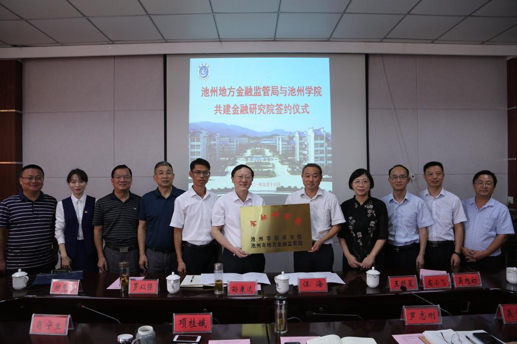 9月16日,PP电子游戏网站与地方金融监管局共建金融研究院签约仪式在博识楼会议室举行。校纪委书记、监察专员汪海,池州市地方金融监管局局长孙康达、副局长罗以强,池州市委组织部人才办主任王明星,池州市建设银行行长高小飞,池州市交通银行行长刘慧娟,池州市九华农商行副行长吴旭初出席活动,商学院党政负责人参加活动。