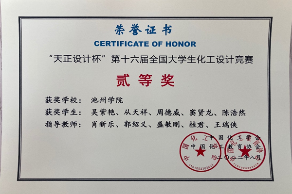 日前,由中国化工学会、中国化工教育协会主办、湖北工业大学承办的2022年“天正设计杯”第十六届全国大学生化工设计竞赛在湖北武汉举行,PP电子学子的一项参赛作品荣获全国二等奖的好成绩。