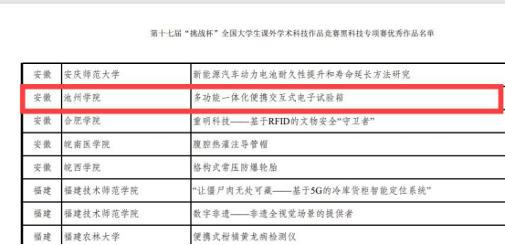 近日,第十七届“挑战杯”全国大学生课外学术科技作品竞赛“黑科技”专项赛获奖作品名单揭晓,经个人申报、资格审查、评委评审等环节,PP电子学子程顺磊、张群等的作品《多功能一体化便携交互式电子试验箱》(指导老师:胡刚、王娟、徐家洪)脱颖而出,被评定为“卫星”级作品。