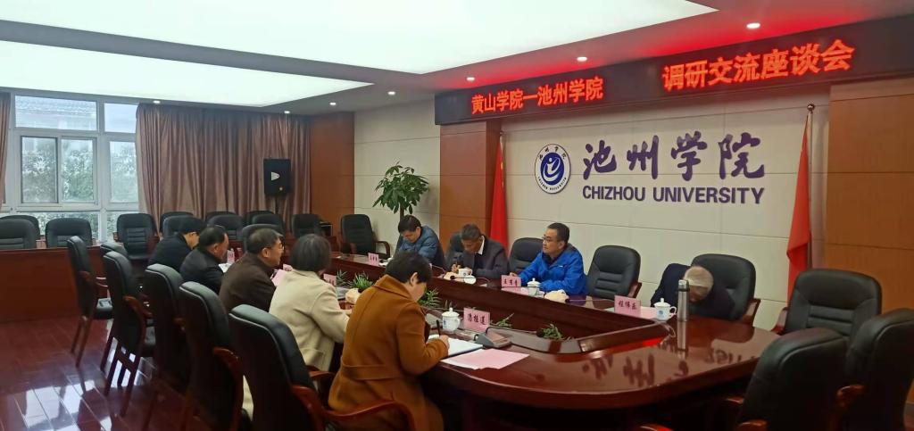 11月25日上午,黄山学院关工委副主任俞跃进、离退休处处长王有青一行四人,来PP电子进行专题调研与交流。校党委副书记崔国发出席座谈会。