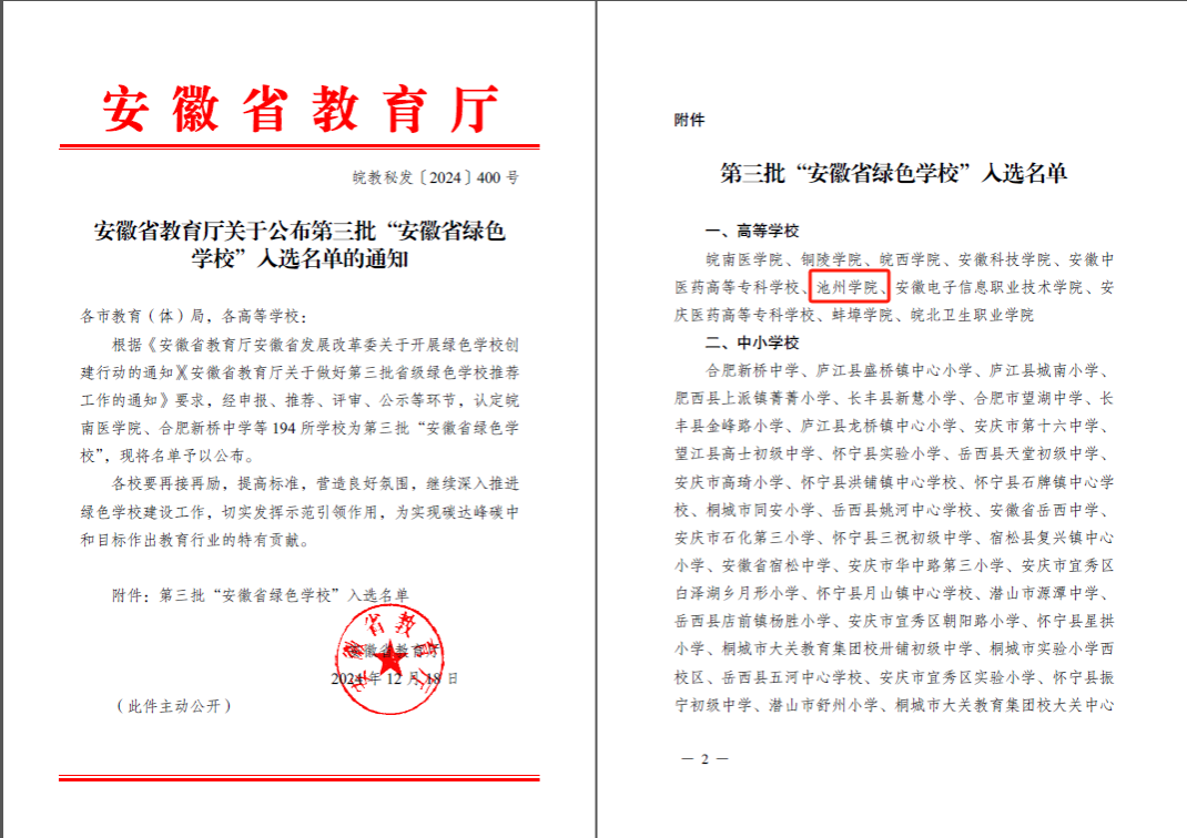 近日,安徽省教育厅公布了第三批“安徽省绿色学校”入选名单,PP电子成功入选。