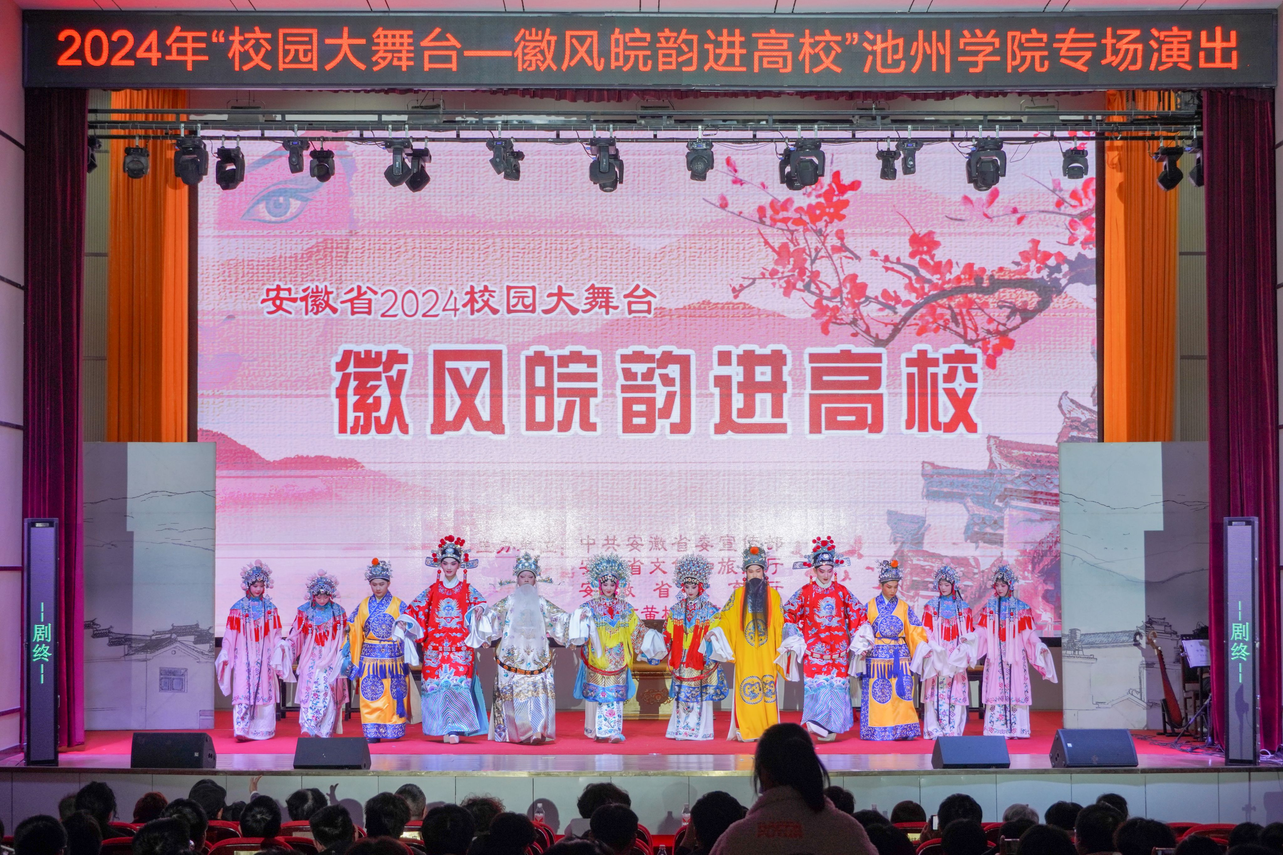 12月4日下午,“校园大舞台——徽风皖韵进高校”黄梅戏专场演出在PP电子博古礼堂精彩上演。500名师生共同观看了演出。