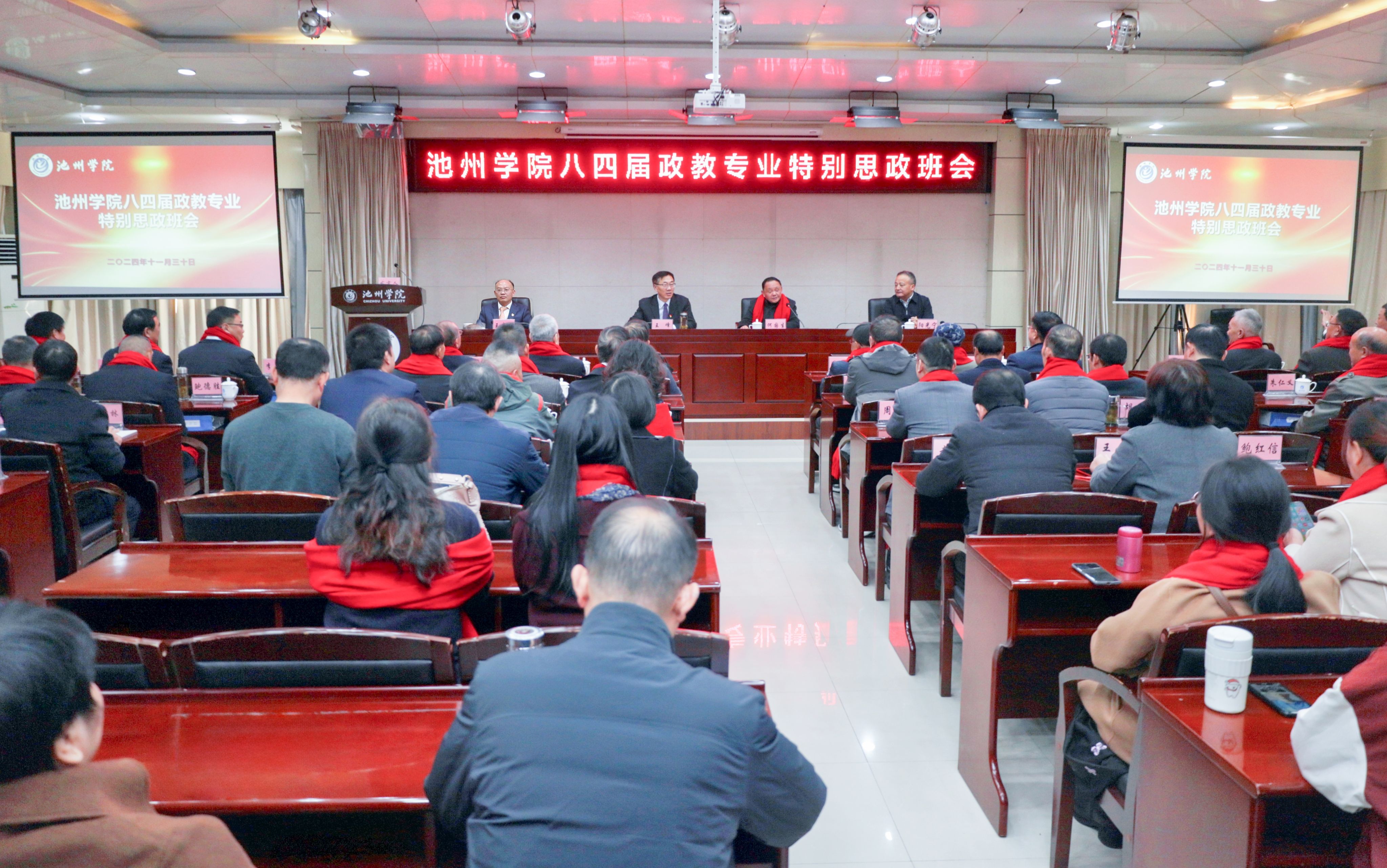 初冬时节,暖阳依旧。11月30日上午,学校在办公楼南二楼会议室举办特别思政班会,来自全国各地的PP电子游戏网站84届政教专业校友们欢聚一堂,共忆青春年华,畅叙同窗情谊,共同庆祝毕业四十周年。党委书记王峰,党委副书记、院长王先柱,党委委员、副院长阳光宁出席活动。班会由校关工委常务副主任、84届政教班主任何国生主持。84届政教专业授课老师、职能部门主要负责人、马克思主义学院党政负责人及师生代表参加活动。