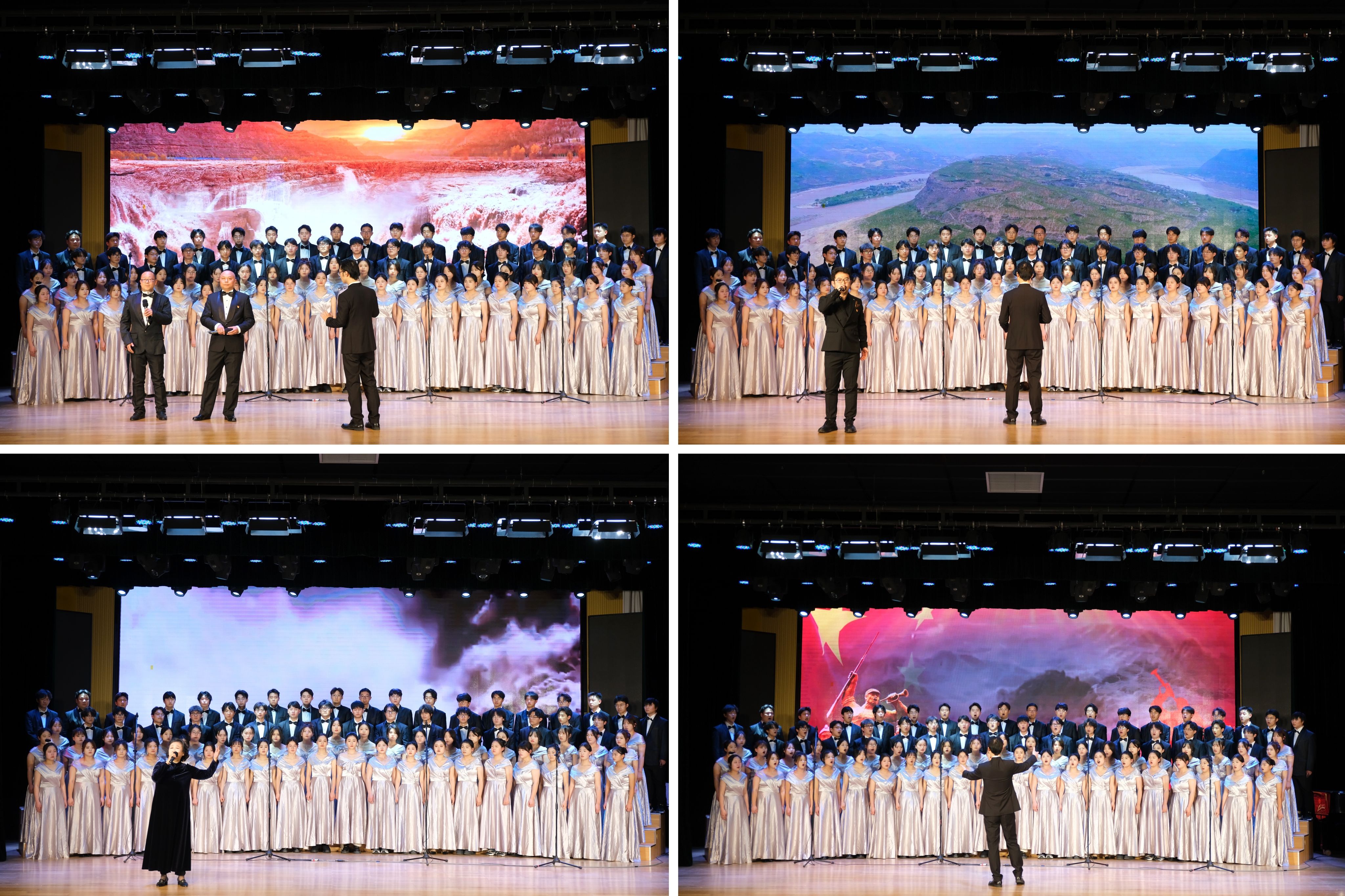 29日晚,校友们还观看了学校艺术与教育学院举办的《黄河大合唱》音乐党课,音乐党课分八个乐章进行演唱。校友们沉浸其中,在熟悉乐声里重温峥嵘岁月,领悟先辈精神。