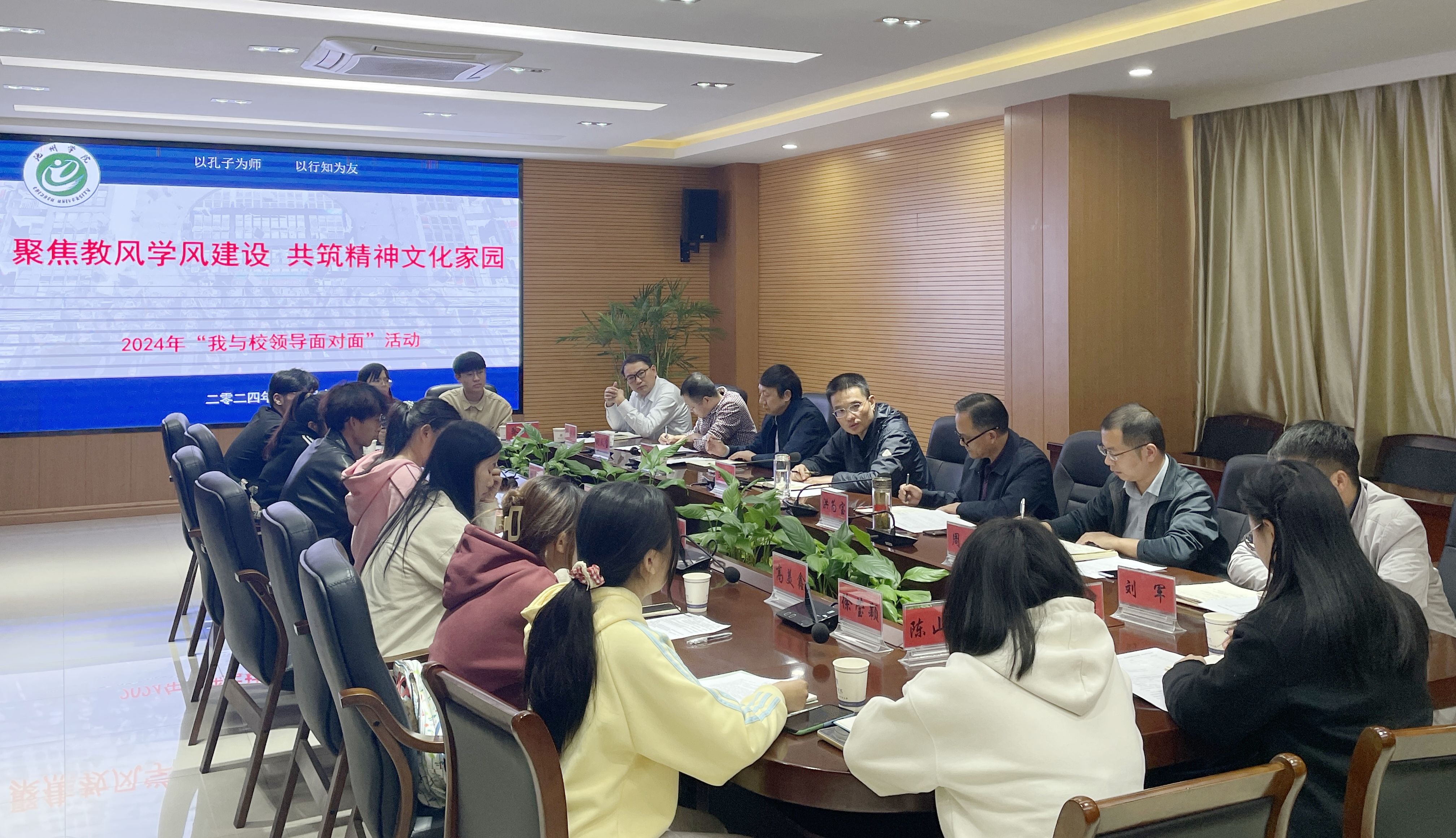 11月13日,学校在办公楼北二楼会议室举办2024年第四季度“我与校领导面对面”活动。校党委委员、副校长吕刚与22名来自各二级学院的学生代表面对面交流,听取意见建议,回应关切问题。