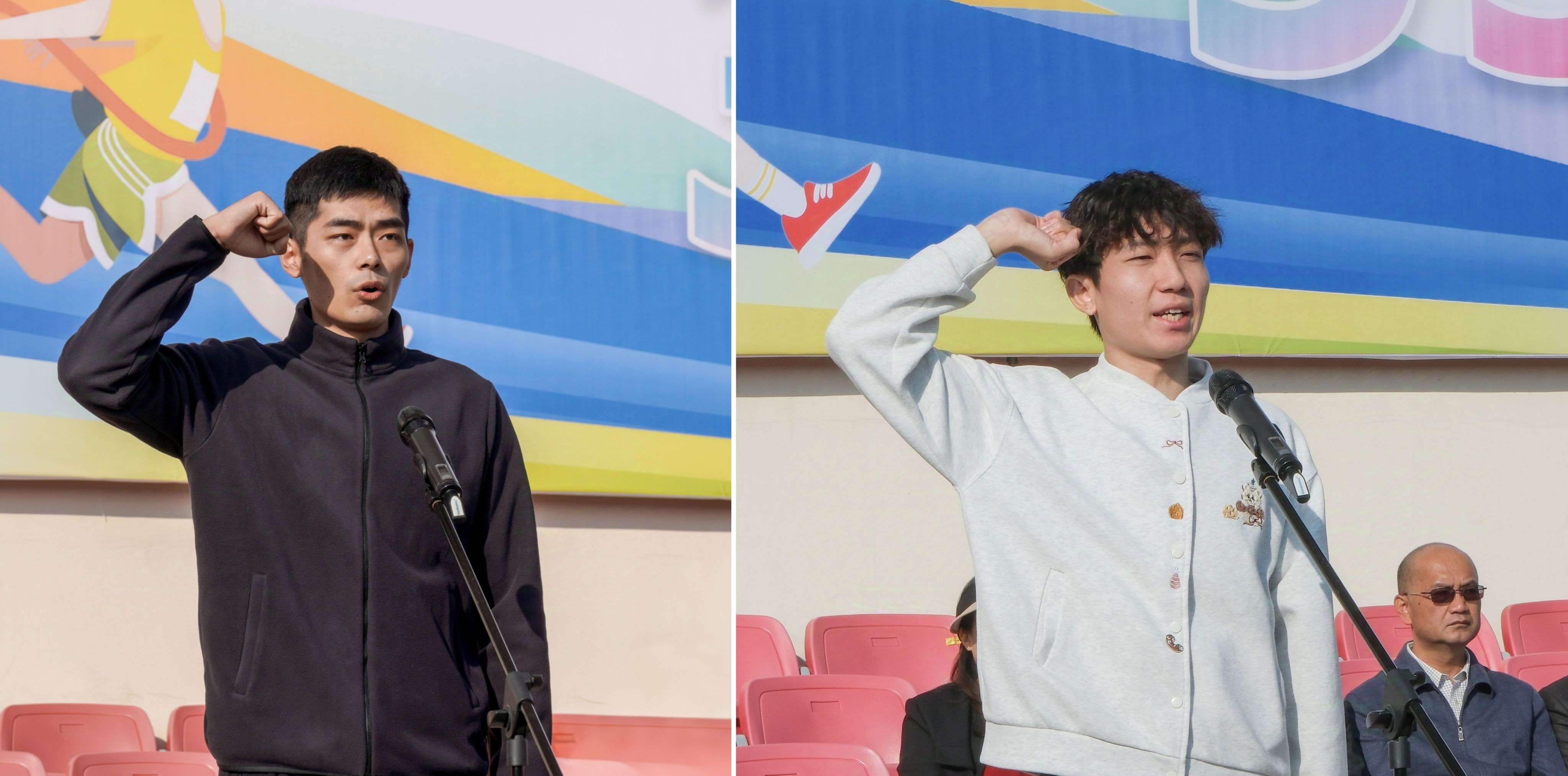 裁判员代表张恒老师和运动员代表余明洋同学分别宣誓,庄严承诺将维护比赛纪律,遵守比赛规则。