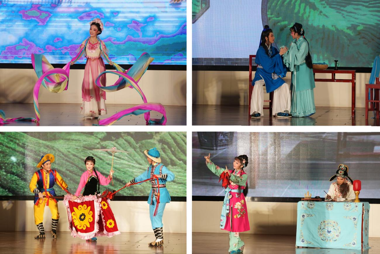 经典小戏《打猪草》凭借真实活泼的表演、淳朴流畅的唱腔呈现出一副清新灵动的田园画卷,将观众们带入到一个充满浪漫的美好世界。《天女散花》以优美的舞姿和动听的歌声,将天女的形象刻画得栩栩如生,赢得了台下观众的热烈的掌声与喝彩。黄梅折子戏《天仙配·满工》曲调明快,唱腔悠扬,洋溢着浓厚的乡土气息,展现出人们对美好生活的无限向往。《推车赶会》整个剧情则充满了诙谐幽默元素,引发现场观众一阵阵捧腹大笑。经典曲目《春香闹学》以书生王金荣与黄小姐的爱情故事,以及丫环春香的机智捉弄为主要情节构成一幕短小、有趣而有意义的喜剧,让观众在欣赏中感受到浓厚的生活情趣。