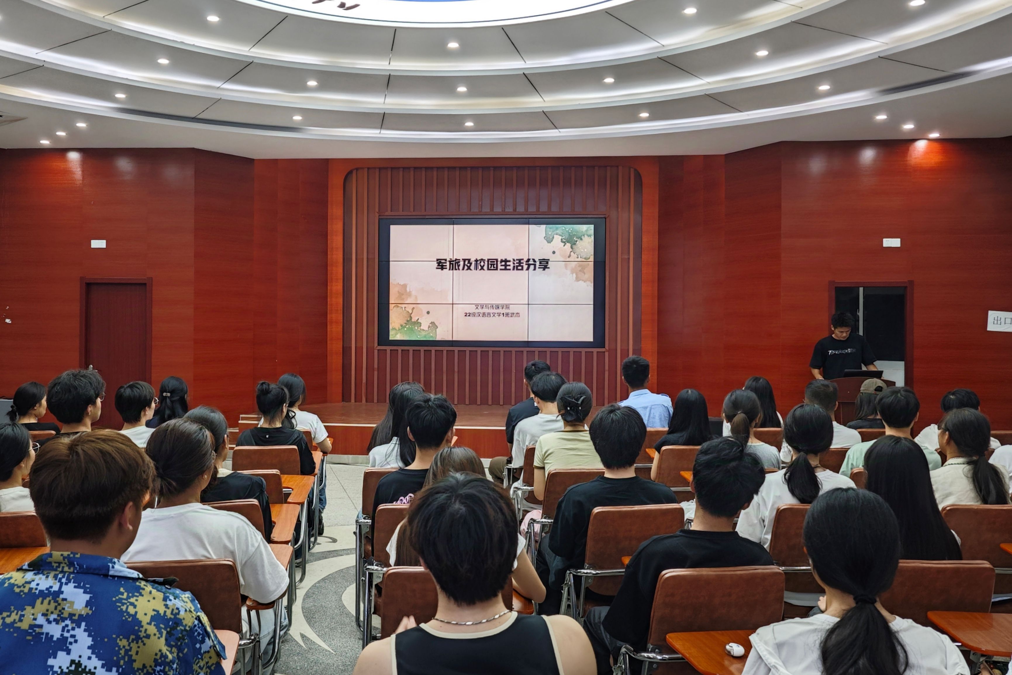 9月18日,以“青春启航筑梦国防”为主题的“青春大讲堂”在大学生活动中心举行。文学与传媒学院武杰、机电工程学院庞帅旗及旅游与历史文化学院方锐三位优秀退伍大学生代表作为嘉宾,分别围绕入伍初心、军营故事、感悟成长等方面,分享了他们迷彩戎装的青春感悟,激励青年学子以家国情怀为基,热血青春筑梦国防,书写无悔青春篇章。