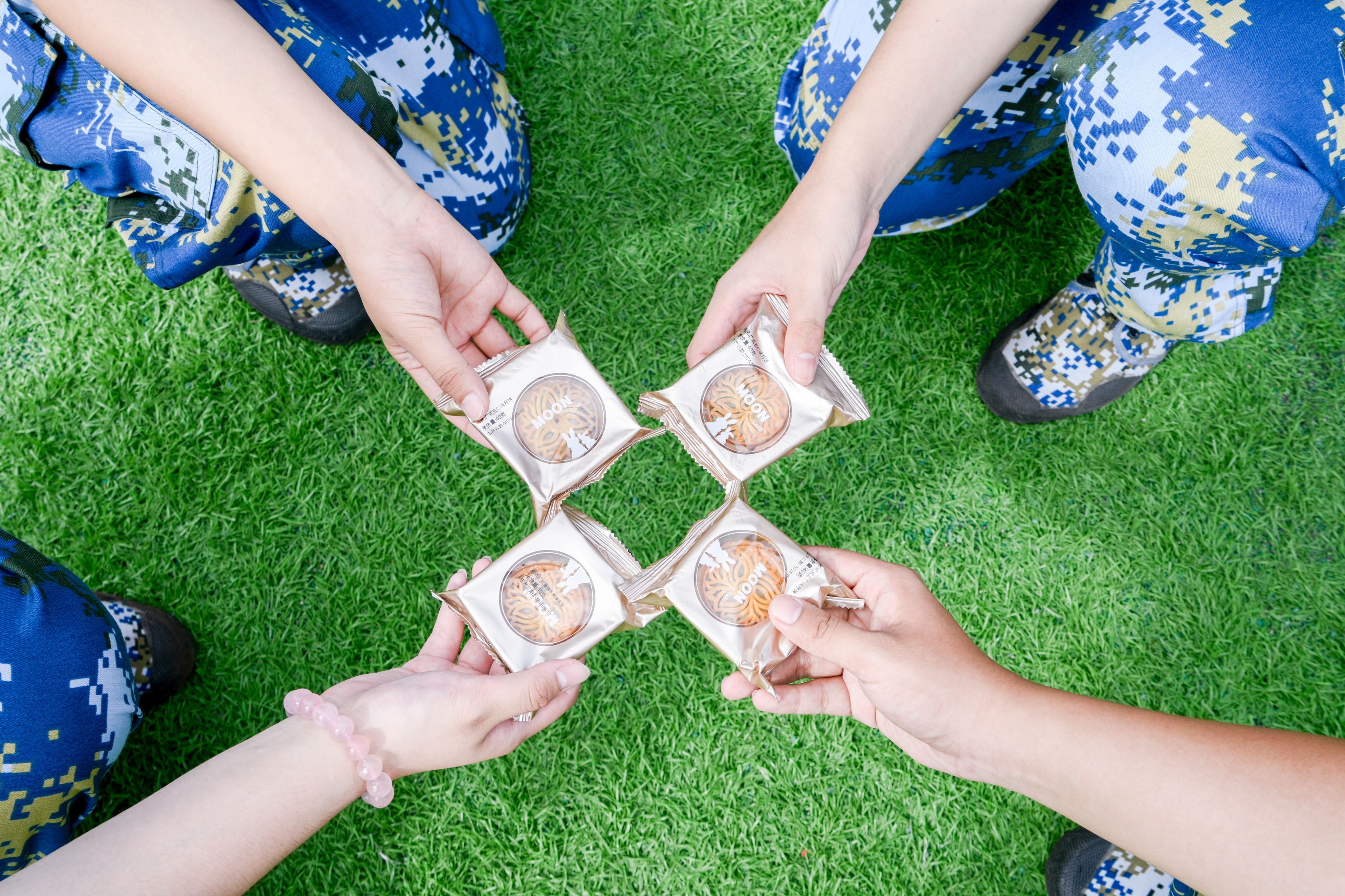 小饼如嚼月,中有酥和怡。在中秋佳节,学校为新生准备了月饼和水果。操场上,工作人员将一个个包装精美的月饼送到正在刻苦军训的学生和辛勤指导的教官手中。拿着月饼,同学们幸福的笑容浸满了幸福的味道,遥在异乡也感受到了家的温暖。