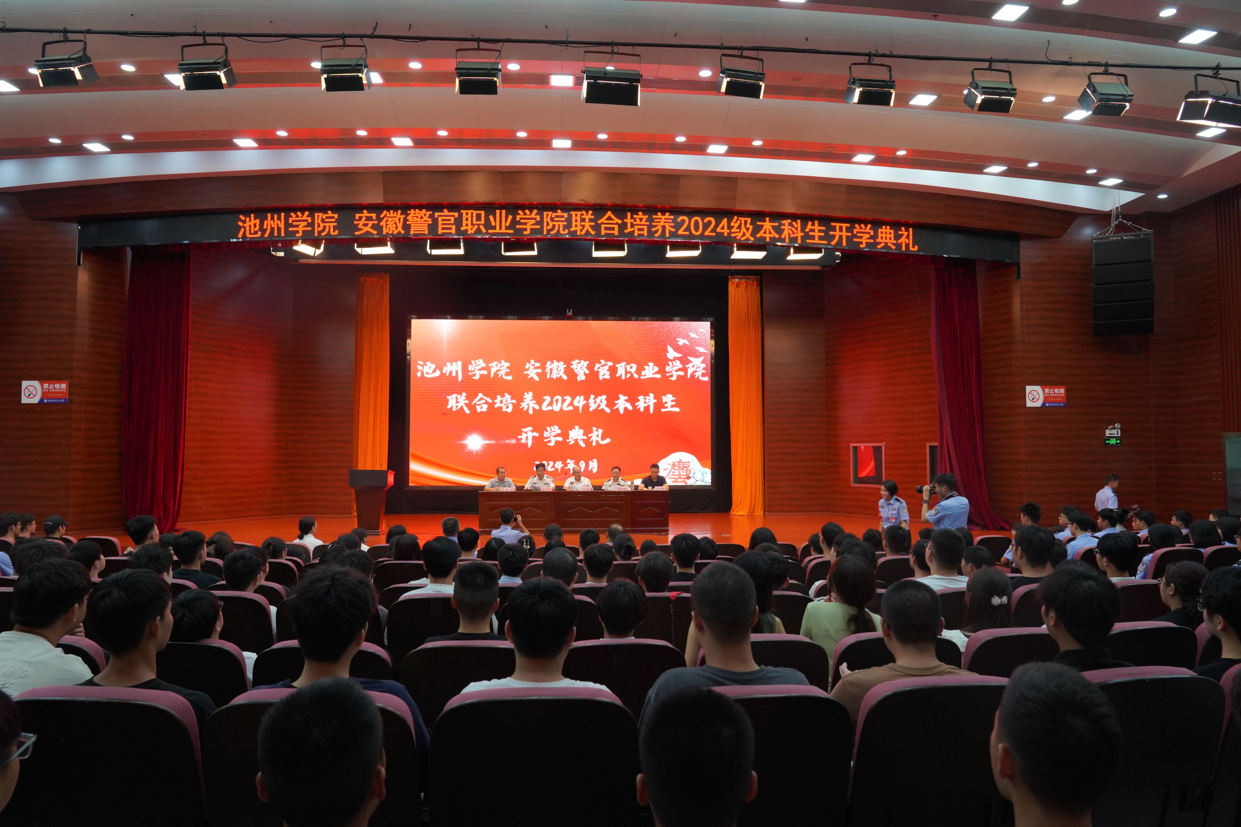 9月11日,PP电子游戏网站和安徽警官职业学院联合培养2024级本科生开学典礼在安徽警官职业学院大礼堂举行。校党委副书记、院长王先柱,安徽警官职业学院院长操申斌出席典礼并讲话。典礼由安徽警官职业学院党委委员、副院长欧元军主持。
