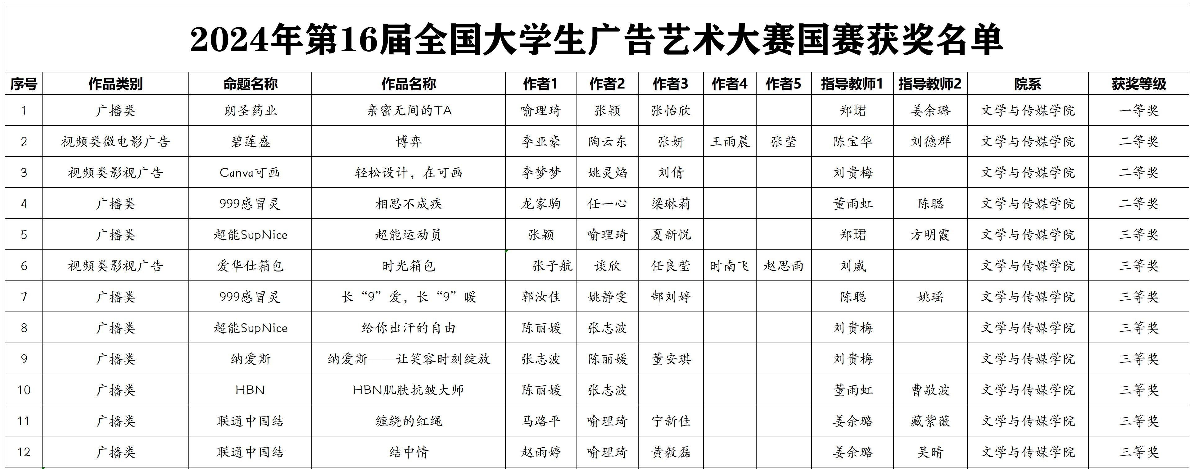 9月10日,2024年第16届全国大学生广告艺术大赛落下帷幕。PP电子文学与传媒学院学子参赛作品获奖颇丰,其中获国家级A类赛事一等奖1项、二等奖3项、三等奖8项、优秀奖23项,同时学校荣获国家级优秀组织院校奖。这也是PP电子连续4年蝉联该项赛事一等奖和连续5年荣获优秀组织奖。