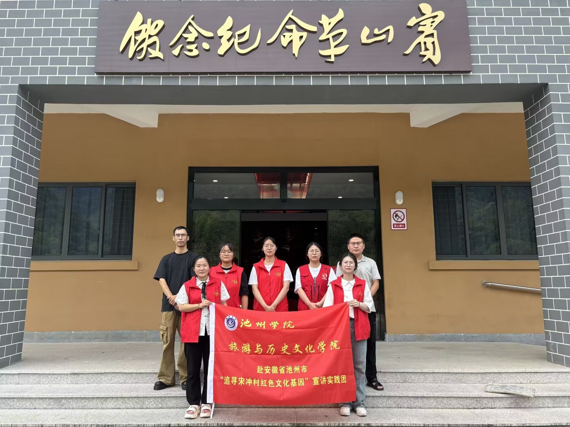 7月8日至11日,旅游与历史文化学院“红迹传声”理论宣讲团赴青阳县宋冲村开展以“追寻宋冲村红色文化基因”为主题的社会实践活动。宣讲团先后走访参观了宾山革命纪念馆、宾山革命老纪念馆、泾青南三县交通旧址、中共北乡支部遗址、潘母之墓等红色基地,瞻仰革命先烈、重温入党誓词,深刻感悟革命先烈胸怀天下的伟大志向和无畏牺牲的革命精神。实践团成员还担任讲解员面向来馆参观的游客讲解泾青南县委开创泾青南游击根据地、坚持三年游击战争的革命故事。