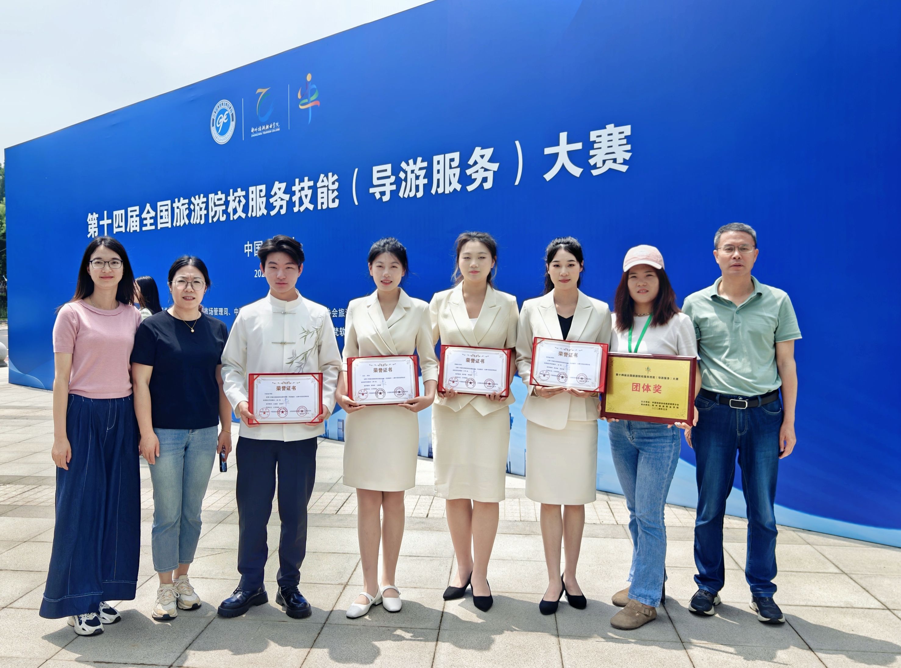 5月23日-26日,第十四届全国旅游院校服务技能(导游服务)大赛在河南郑州举办。PP电子2021级旅游管理对口班陈双晴、2023级旅游管理对口2班何家豪分别获得全国高等院校普通话组二、三等奖,2021级旅游管理1班刘庆、2022级旅游管理1班程毓琪获得全国高等院校英语组三等奖,团队总成绩排名全国前20%,荣获大赛团体奖。