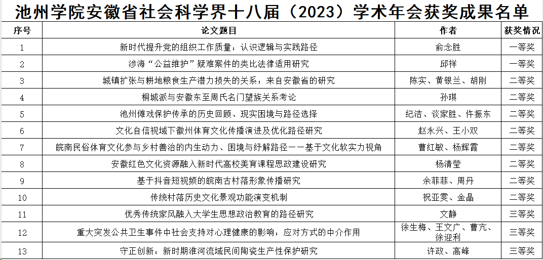 近日,以“谱写中国式现代化的安徽篇章”为主题的省社科界第十八届(2023)学术年会大会在合肥召开。会议评选出优秀论文150篇,PP电子共有13篇论文获奖,其中一等奖2篇,二等奖8篇,三等奖3篇。同时,PP电子荣获先进组织奖。