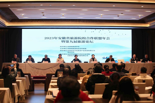 11月23日至25日,2023年安徽省旅游院校合作联盟年会暨第九届旅游论坛在池州顺利召开。党委副书记、院长郑兰荣,安徽省旅游学会会长张雪平,池州市人民政府副秘书长程芳出席会议并致辞。党委委员、副院长阳光宁主持开幕式。来自全省30多所高校120余名参会者参加会议。