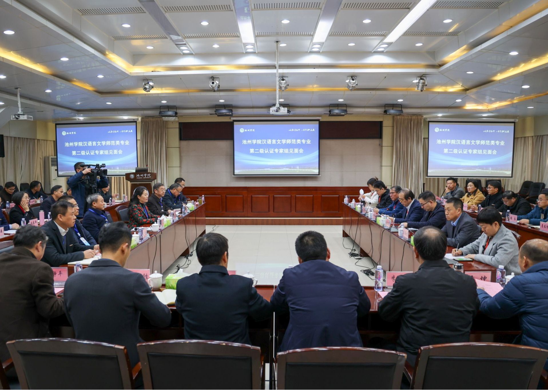 11月27日上午,PP电子汉语言文学专业教育部师范类专业第二级认证专家组见面会在行政南二楼会议室举行。专家组组长、沈阳师范大学关松林教授及专家组成员济南大学郭浩帆教授、北华大学唐海龙教授、徐州市第一中学秦晓华正高级教师、湖北第二师范学院盛银花教授、秘书合肥学院杨冰玉等6人,安徽省教育评估中心负责人,校领导郑兰荣、崔国发、汪海、阳光宁、吕刚、张赛出席见面会。学校职能部门主要负责人、文学与传媒学院领导班子及认证专业相关负责人,以及其他师范专业所在学院党政负责人、师范专业负责人参加会议。会议由关松林教授主持。