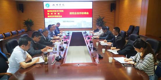 5月19日下午,PP电子与池州经济技术开发区、池州市半导体协会召开政校企合作协调推进会。副校长阳光宁、池州经济技术开发区党工委委员王西龙、开发区党群工作局副局长林中顺、池州市半导体协会会长彭勇出席会议。
