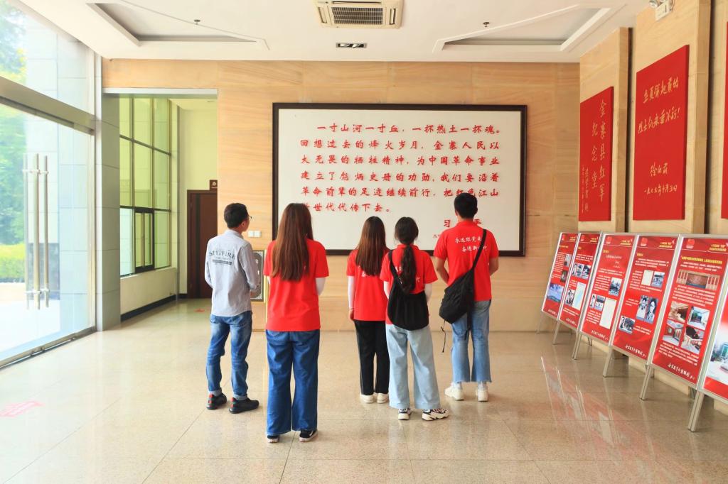 实践团抵达金寨县后,先后走访了金寨县鄂豫皖纪念园、红军广场、金寨县革命博物、红军烈士陵园、大湾村等多处红色教育基地,通过一张张图片,一段段文字,大家认真的学习了革命前辈们为新中国做出的重要贡献和勇于革命的先进事迹,在“实景课堂”中学党史,悟思想。