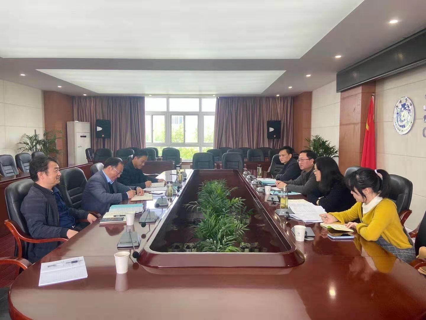 4月16日上午,池州市水务局、教体局及机关事务管理局相关领导来PP电子进行节水工作调研。调研会议在行政楼北三楼会议室举行,副校长王延寿出席并主持会议。