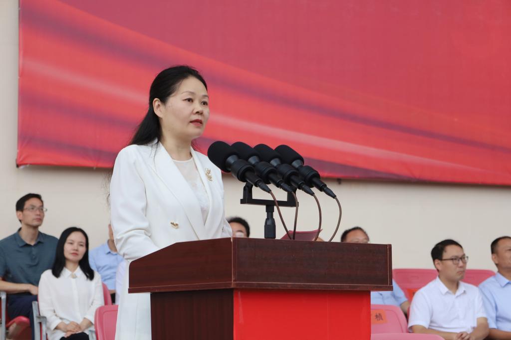 党委副书记、院长郑兰荣代表学校向2023级新同学表示最热烈的欢迎,向辛勤培育学生成长的学生父母、老师和亲友致以崇高的敬意。
