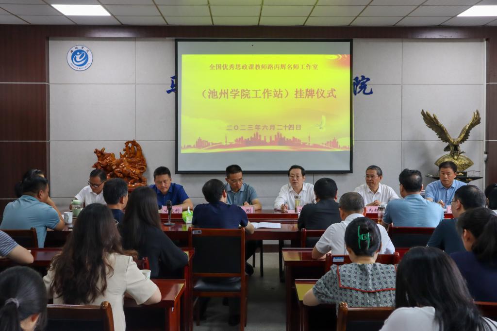 为深入贯彻落实教育部关于思政课建设标准,充分发挥全国高校思政课名师工作室的示范引领作用,推进思政课改革创新,6月24日上午,学校举行全国高校思政课名师工作室(PP电子游戏网站)工作站揭牌仪式。校党委书记孙晓峰,安徽师范大学全国高校思政课名师工作室负责人路丙辉,党委委员、副院长吕刚出席活动。办公室、宣传部、学工部、教务处、马克思主义学院等部门负责人,部分专职思政课教师、辅导员、党支部书记和学生代表等参加了揭牌仪式。