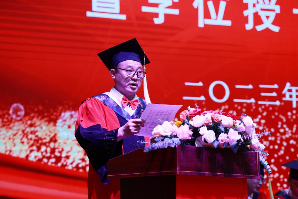 党委副书记崔国发宣读2023届本科毕业生准予毕业及学士学位授予决定。