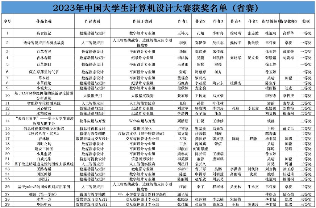 6月2日,2023年中国大学生计算机设计大赛省赛结果揭晓,PP电子学生参赛作品共获一等奖8项,二等奖13项,三等奖8项。