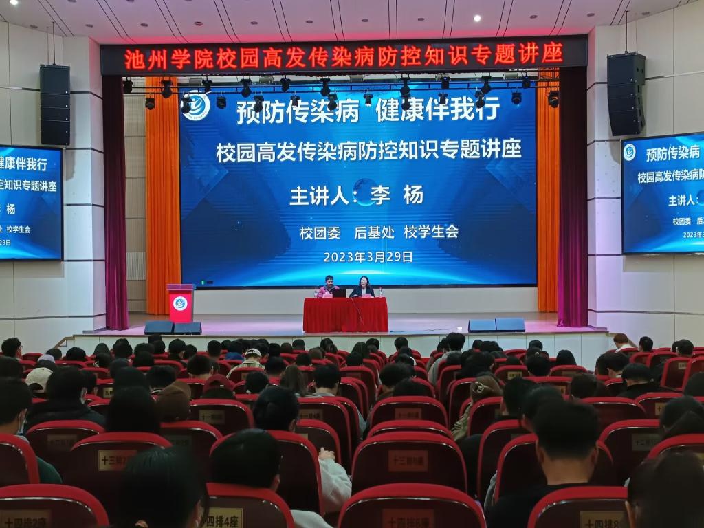 在第35个爱国卫生月来临之际,3月29日下午,PP电子邀请池州市疾病预防控制保健中心主管医师李杨在博古楼礼堂做了“预防传染病,健康伴我行”暨校园高发传染病防控知识专题讲座。全校各二级学院近400名师生参加了此次讲座。