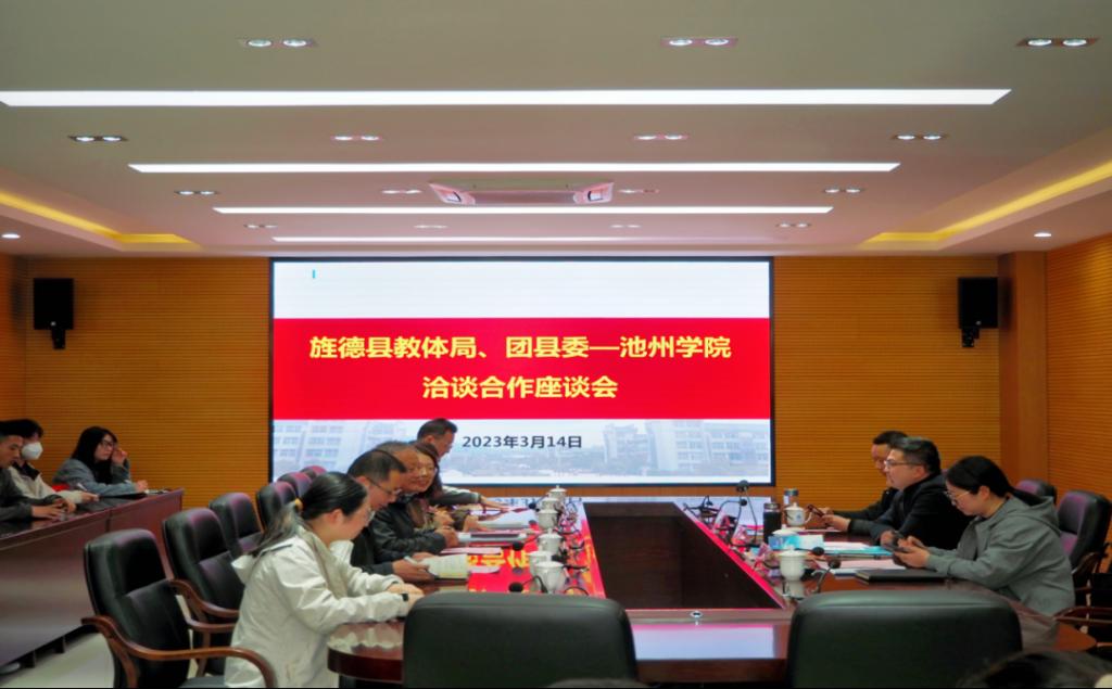 3月14日下午,共青团旌德县委书记张旭涛、旌德县教体局副局长姚菊霞、宣城旅游学校副校长童德明等一行三人来PP电子就深化校地校企合作开展交流。院党委委员、副院长阳光宁出席座谈会。