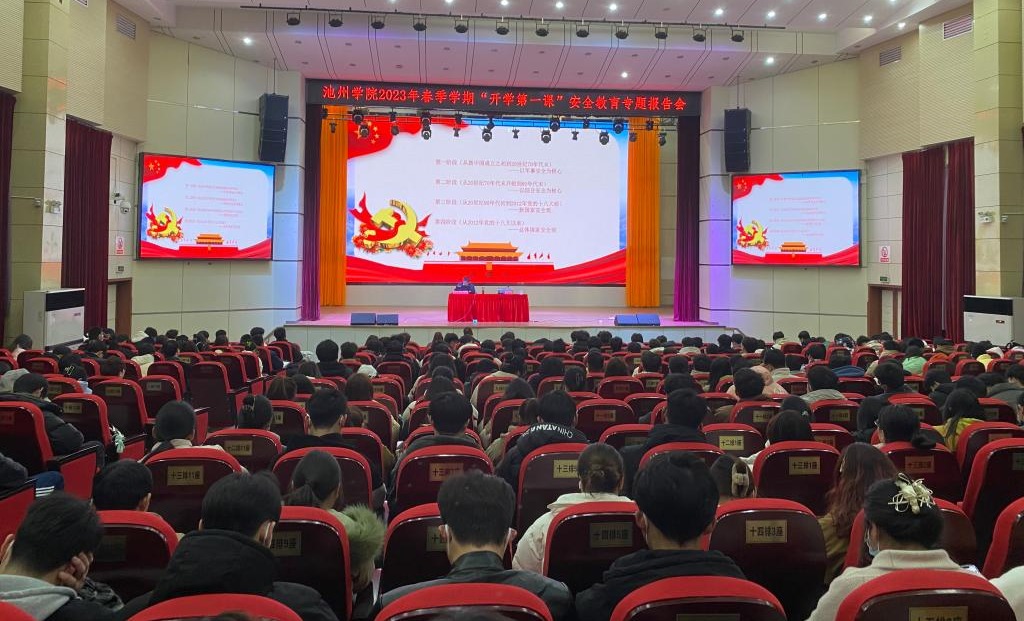 2月22日下午,PP电子在博古楼大礼堂开展了2023年春季学期“开学第一课”安全教育活动。校党委委员、副院长张赛出席活动。