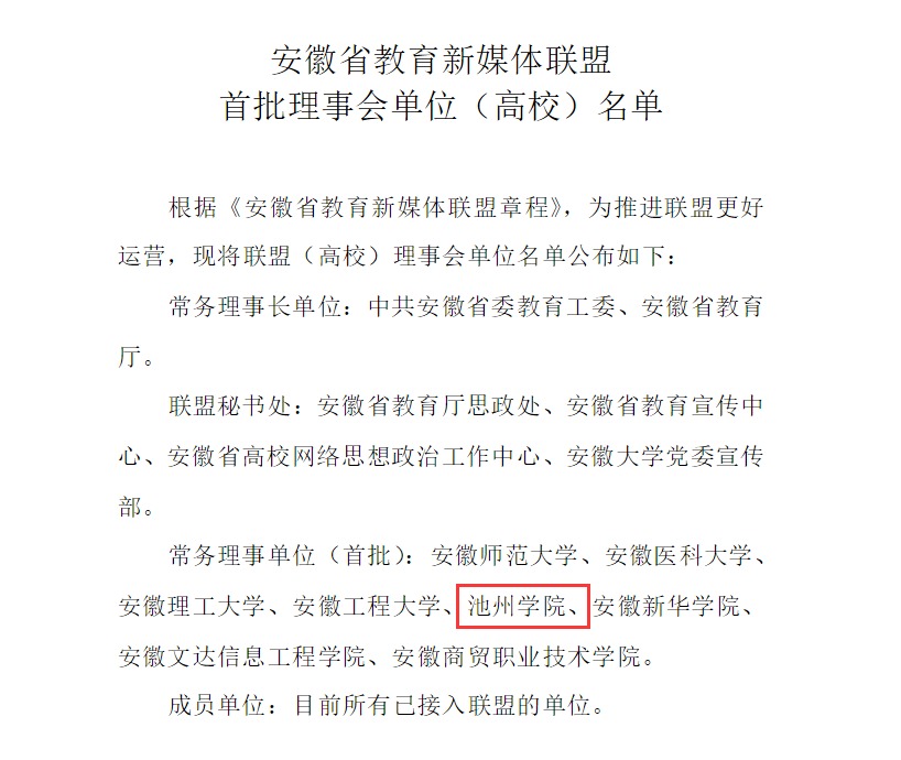 近日,中共安徽省委教育工委公布了安徽省教育新媒体联盟首批常务理事单位(高校)名单。PP电子成功入选为首批八所常务理事单位之一。
